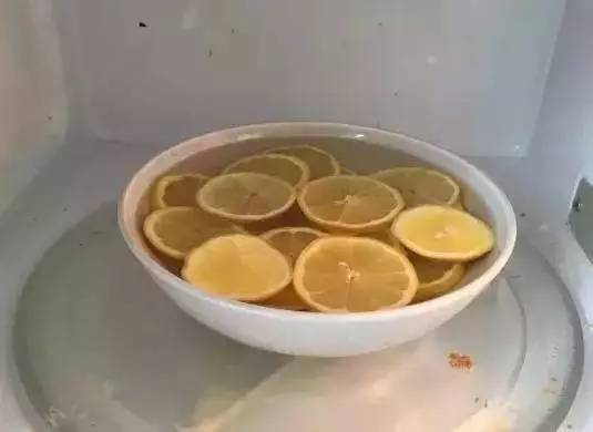 檸檬切片,放入可微波的碗中,加入4~5 湯匙醋,加滿水。將碗放入微波爐內(nèi), 開高火微波5-10分鐘。將碗拿出來(lái)后, 用干凈的濕抹布就能輕松擦掉微波爐內(nèi)的油漬啦!