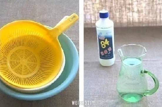 ▌將84消毒液和清水,以1:200的比例兌在一起,將需要“換膚”的塑料制品放入,浸泡兩個小時。再用清水反復沖洗干凈就可以了,效果好又不會產(chǎn)生任何腐蝕作用,浸泡過塑料框的水還可以倒入馬桶中,還能起到清潔馬桶的作用。