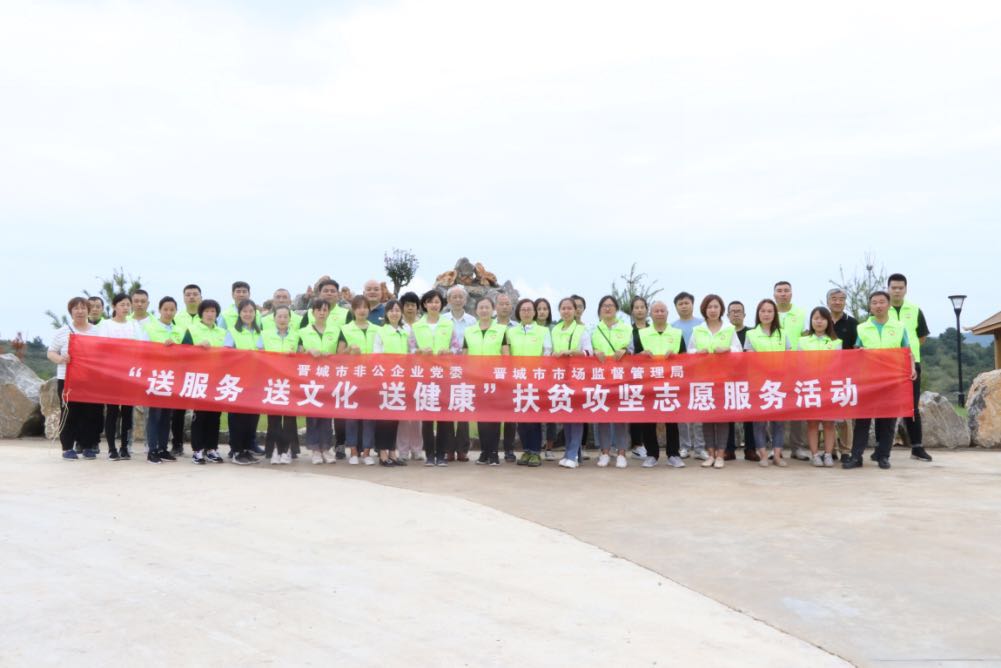 此次活動(dòng)由晉城市市場(chǎng)監(jiān)督管理局和市非公企業(yè)黨委領(lǐng)導(dǎo)帶隊(duì),非公黨委下屬的潔霸清潔、神利電器、隆泰實(shí)業(yè)、龍谷倉(cāng)等九個(gè)支部的黨員志愿者30余人參加,活動(dòng)旨在關(guān)愛(ài)弱勢(shì)群體,提供志愿服務(wù),弘揚(yáng)黨員志愿者精神,切實(shí)發(fā)揮文明單位的引領(lǐng)示范作用,送文化和健康下鄉(xiāng),助力晉城市扶貧攻堅(jiān)行動(dòng)。