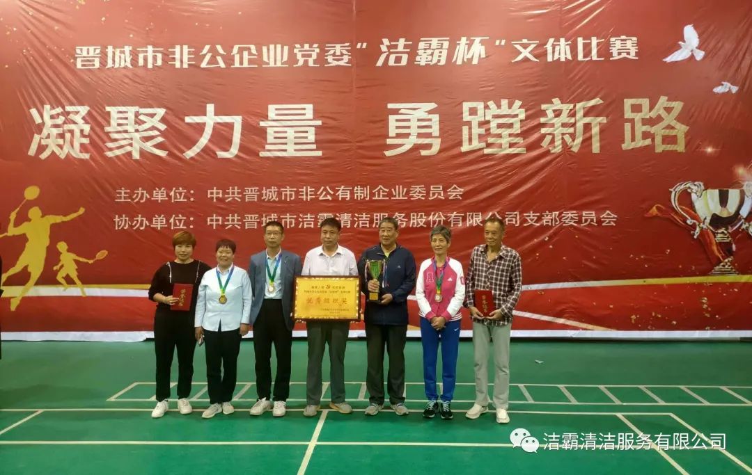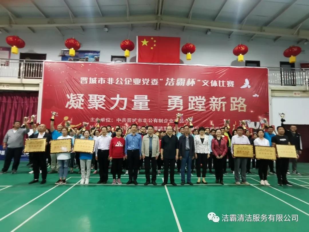 9月25日下午,晉城市非公企業(yè)黨委“潔霸杯”文體比賽落下帷幕。此次比賽由中共晉城市非公有制企業(yè)委員會主辦,中共晉城市潔霸清潔服務(wù)股份有限公司支部委員會冠名協(xié)辦。此次活動的主題是“凝聚力量 勇蹚新路”,旨在新中國成立71周年之際,全面展示非公企業(yè)黨組織開展群眾性體育活動的豐碩成果,以及廣大黨員干部創(chuàng)先爭優(yōu),奮發(fā)進取,勇蹚新路,爭做時代先鋒的精神風(fēng)貌。
